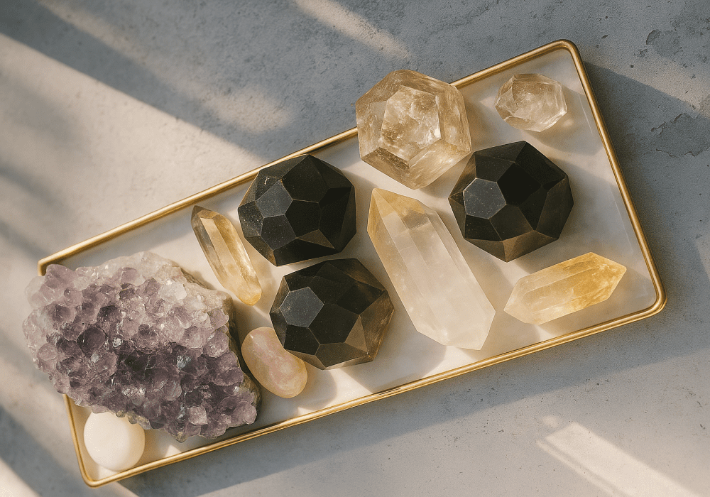 Cada cristal carrega uma composição energética única, capaz de estabilizar o campo vibracional do espaço e potencializar intenções específicas – como sucesso, relacionamentos, carreira, espiritualidade, entre outras áreas da vida.
